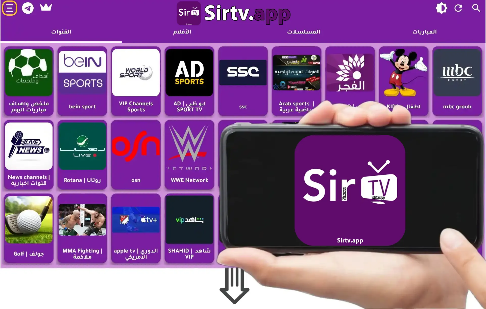 تحميل Sir TV | للهاتف والتلفاز الذكي مع كود التفعيل.
